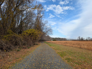 This trail loops around the ball fields, but a 1.8-mile loop is through the woods, over a boardwalk, and around a meadow, making you feel like you are further away from the ball fields.